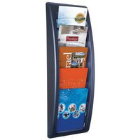 Een aanwinst op kantoor. Wanddisplay met transparante vakken om brochures duidelijk en overzichtelijk ordenen. U pakt direct de juiste brochure. Vak met een dikte van 2 cm met vensters van kristalpolystyreen. Houder van gekleurd polystyreen. Gemonteerd geleverd. Bevestiging met schroeven (niet meegeleverd). Gemaakt in de EU