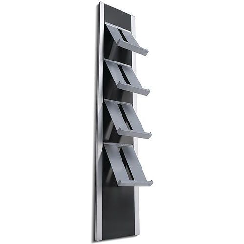 | Productnaam | Folderstandaard Design met 4 folderhouders, Aantal vakken: 4, Kleur: Zilver, Totale breedte: 328 mm |