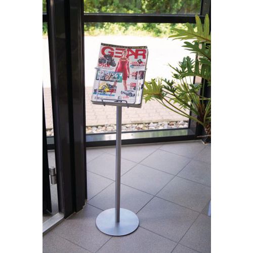 | Productnaam | Folderstandaard op poot 1 vak, Aantal vakken/kolom: 1, Voor formaat: A4, Kleur: Grijs, Hoogte: 89 cm |