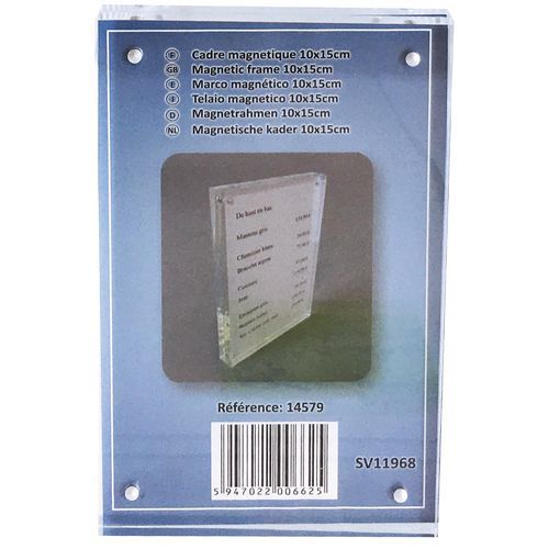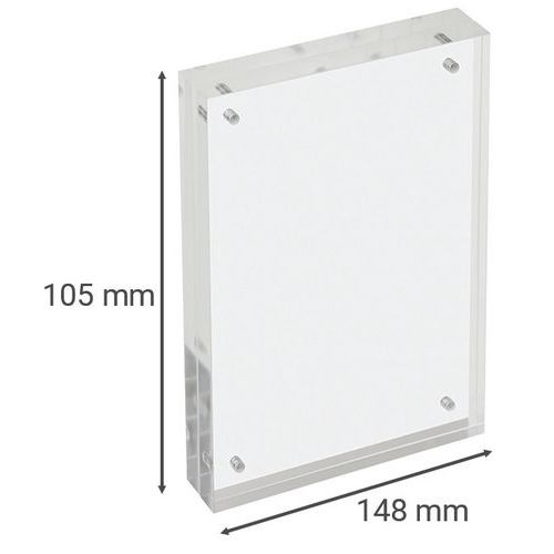 Fotolijst of affichehouder transparant met magnetische sluiting. Plaats uw document of foto tussen 2 magnetische platen van plexiglas. Sluiting met 8 krachtige magnetische knoppen in 4 hoeken. Kan staand, liggend of plat worden geplaatst. Gemaakt in de EU