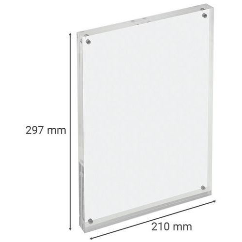 Fotolijst of affichehouder transparant met magnetische sluiting. Plaats uw document of foto tussen 2 magnetische platen van plexiglas. Sluiting met 8 krachtige magnetische knoppen in 4 hoeken. Kan staand, liggend of plat worden geplaatst. Gemaakt in de EU