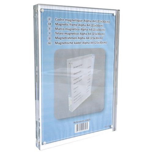 Fotolijst of affichehouder transparant met magnetische sluiting. Plaats uw document of foto tussen 2 magnetische platen van plexiglas. Sluiting met 8 krachtige magnetische knoppen in 4 hoeken. Kan staand, liggend of plat worden geplaatst.