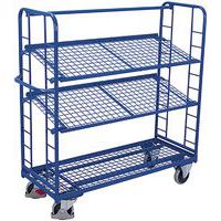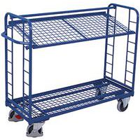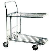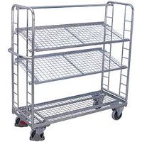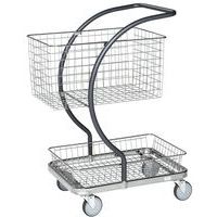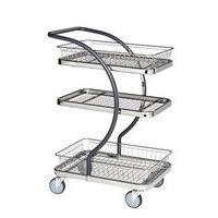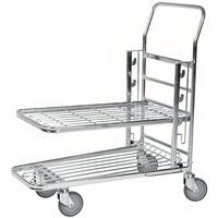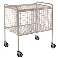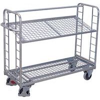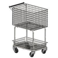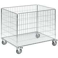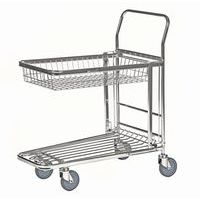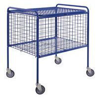 - Elektrolytisch verzinkt met doorzichtige coating, stapelbaar Afstand tussen planken 430 mm Binnenmaten mand:695 x 328 x0 125 mm Capaciteit bovenste plank: 100 kg 4 zwenkwielen 125 mm Capaciteit: 300 kg
