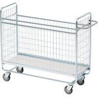 - Elektrolytisch verzinkt Binnenmaten box 625 x 110 x 150 mm,Gaas van de box 45 x 30 mm,Resistent multiplex platform 850 x 600/540 mm,Zwenkwielen onder de plank om het plankoppervlak te beschermen tegen krassen bij het plaatsen van artikelen. 4 zwenkwielen 125 mm,Capaciteit: 200 kg