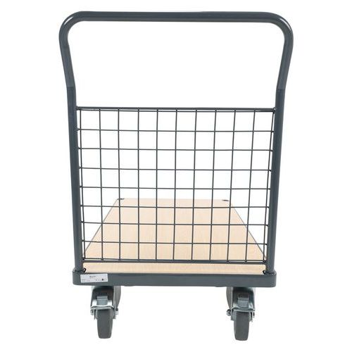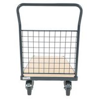 - Plateauwagen met gaaswand en vaste duwbeugel en robuust frame, stalen chassis en duwbeugel met 1 gaaswand voor een langere levensduur.