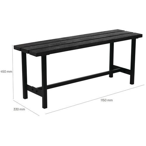 | Productnaam | Garderobebank pvc, Zitting materiaal: PVC, Breedte: 1150 mm, Zitting kleur: Zwart, Frame materiaal: Staal |