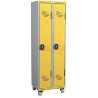 Garderobekast van hoogwaardig plaatstaal, zeer stevig, vormvast. Gevormd plaatstaal 6/1e (conform standaarddoorbuiging 8/1e). Aan elkaar gelaste kolommen voor meer stevigheid. Uitstekende mechanische weerstand met gesloten klemprofiel. Deur onwrikbaar in open en gesloten stand, breukbestendig. Scharniert open tot 18°. Garderobekast met etikethouder. Combineer stevigheid, veiligheid en fraaie vormgeving voor uw collectieve ruimtes!