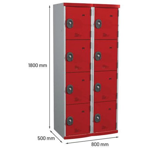 Garderobekast 8 vakken Seamline Optimum® - 2 kolommen breedte 400 mm - op sokkel - Acial
