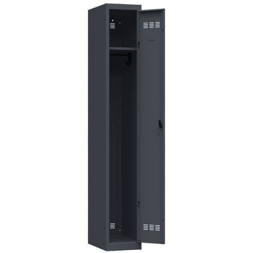 Garderobekasten voor kantoor 1 kolom. Modern ontwerp, waarin kwaliteit, veiligheid en design zijn verenigd. Gelast in de fabriek voor een optimale stevigheid. Voorzien van een zeer hoge bestendigheid tegen inbraak. Veiligheidstips: - Plaats het meubel op een vlak oppervlak - Bevestig het aan de muur of een scheidingswand met een speciale bevestiging - Let erop dat u de aanbevolen maximale belasting niet overschrijdt en zorg voor een goede verdeling