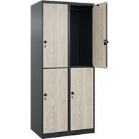- Garderobekast op sokkel met metalen l-deuren elke kolom bevat 2 volledige garderobekasten met hangkast en opbergvak. scharnierende vleugeldeuren met een opening van 180°. sterk beveiligde en stille 2-puntssluiting (2 sleutels meegeleverd). ventilatie aan de voorkant en boorgaten voor zij-aan-zijplaatsing.