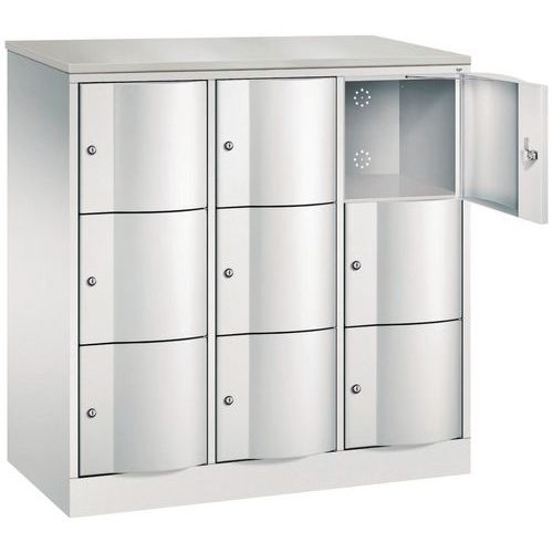 Garderobekast 9 en 15 vakken met vandalismebestendige deur - 3 kolommen, breedte 380 mm - Op sokkel - CP