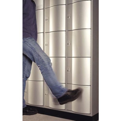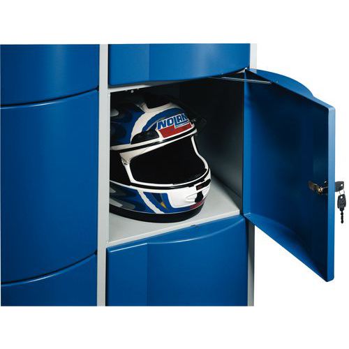 Robuuste garderobekast voor kantoor uit één stuk, vandalismebestendig. Onverwoestbare gebogen deuren bestand tegen inbraak. Krasbestendige poedercoating. Mooie afwerking met onzichtbare scharnieren. Hygiënisch met ventilatie aan de achterkant. Begrenzer om de deur niet meer dan 8° te openen.