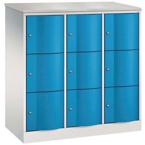 Garderobekast 9 en 15 vakken met vandalismebestendige deur - 3 kolommen, breedte 380 mm - Op sokkel - CP