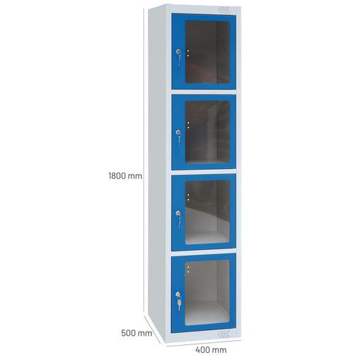 | Productnaam | Garderobekast met transparante deur 4 vakken, Type garderobekast: Met vakken, Materiaal: Staal |