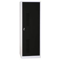 Garderobekast voor politie en veiligheidsdiensten met geïntegreerde kluis. Stevige constructie uit gelast metaal. Coating van elektrostatisch poeder. Kluis voor pistool met slot op de bovenste plank. Kleine legplanken voor de opslag van diverse politiehulpmiddelen.