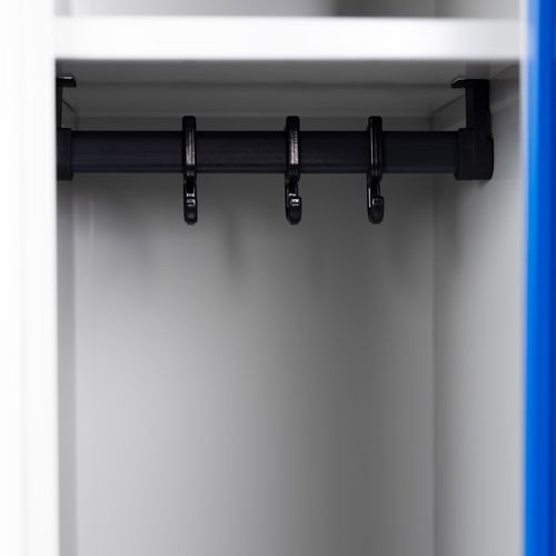 Robuuste magazijngarderobekast, speciaal voor schone industrie, volledig plat en gedemonteerd geleverd. Duurzame constructie van metaal met gelakte afwerking en coating van elektrostatisch poeder. Verstevigde deur met onzichtbare scharnieren, geluidsdempend met kunststof stempel. Deur met dubbel ventilatierooster en etikethouder. Garderobekast comfortabel in gebruik met grote opening van 115°.