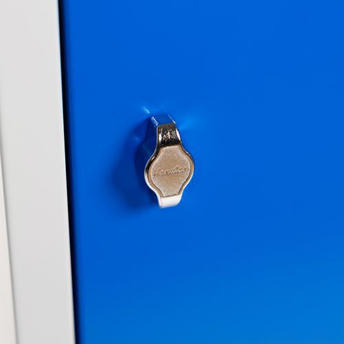 Robuuste magazijngarderobekast, speciaal voor schone industrie, volledig plat en gedemonteerd geleverd. Duurzame constructie van metaal met gelakte afwerking en coating van elektrostatisch poeder. Verstevigde deur met onzichtbare scharnieren, geluidsdempend met kunststof stempel. Deur met dubbel ventilatierooster en etikethouder. Garderobekast comfortabel in gebruik met grote opening van 115°.