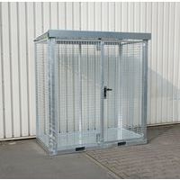 - Opslag voor gecomprimeerde gasflessen van thermisch verzinkt staal met deuren en anti-inbraaksloten.