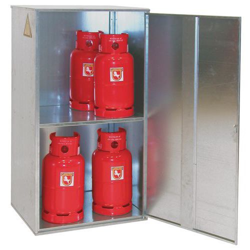 - Opslag voor gasflessen van warm gegalvaniseerd staal met deuren en vergrendeling tegen inbraak.