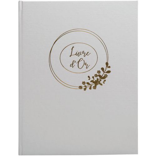 Het verticale gastenboek van 27 x 22 cm bevat 100 pagina's met goudrand.