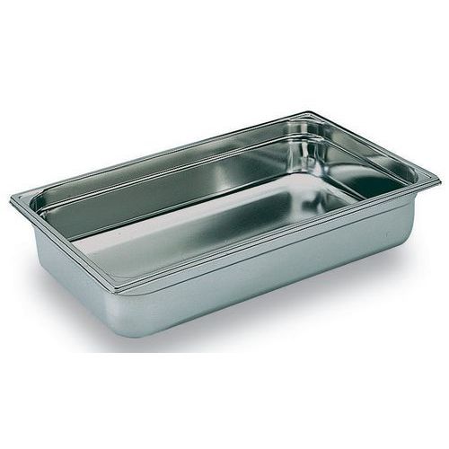 Gastronormbak: modulaire bakken van roestvrij staal. Afmetingen aangepast aan internationale normen van de standaardisatie van het keukenmateriaal NF 631-1. Kan worden gebruikt voor de bereiding, het koken, vriezen, verwarmen en opdiening van de maaltijden. Verstevigde randen en hoeken tegen vervorming. Onze rvs bakken zijn compatibel met de deksels van ons assortiment ‘Cristal’.