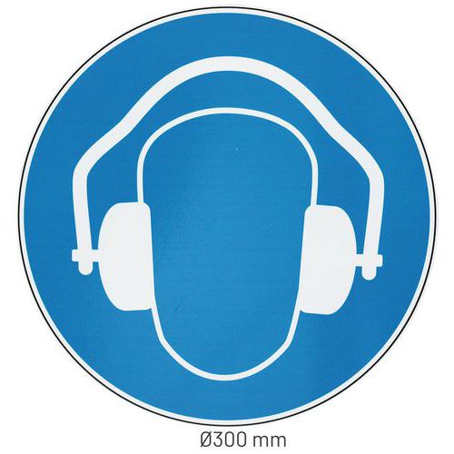 - Bord met pictogram dat voor iedereen begrijpelijk is: Dragen van gehoorbescherming is verplicht.