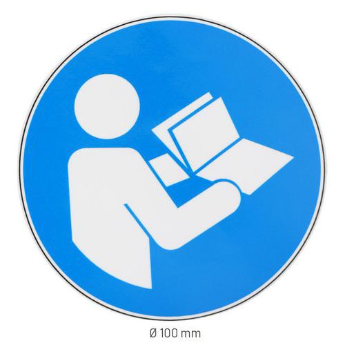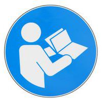 | Productnaam | Bord Gebruiksaanwijzing raadplegen, Zelfklevend: ja, Stijf: nee, Norm ISO 7010: ja, Paneel vorm: Rond |