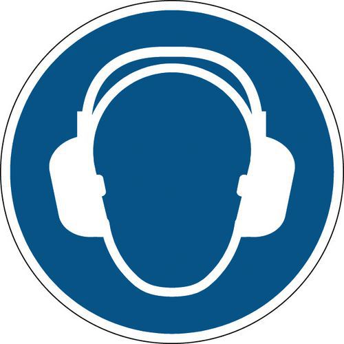 - Gebodsbord met pictogram gehoorbescherming verplicht
