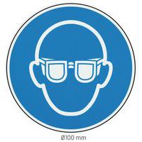 - Met dit veiligheidsbord kunt u aangeven dat het dragen van een opake veiligheidsbril verplicht is.