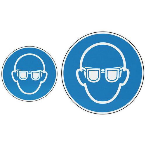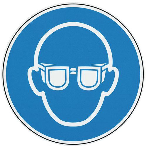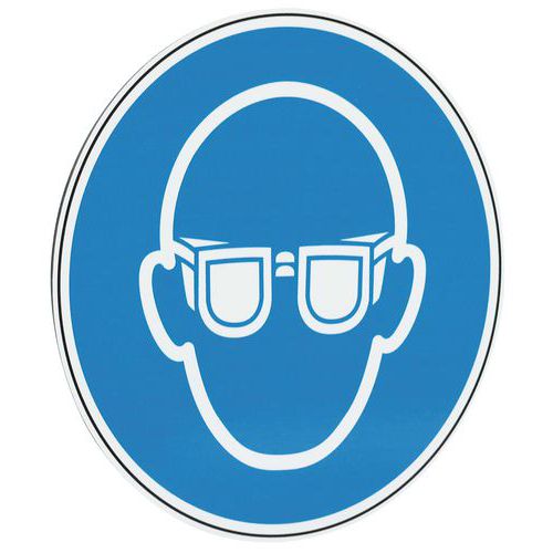 - Met dit veiligheidsbord kunt u aangeven dat het dragen van een opake veiligheidsbril verplicht is.