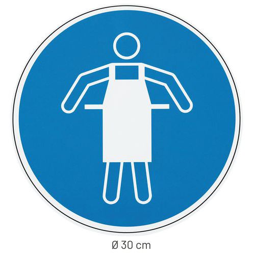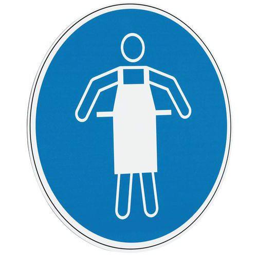 | Productnaam | Gebodsbord Veiligheidsschort dragen, aluminium, Zelfklevend: nee, Stijf: ja, Norm ISO 7010: ja |