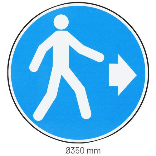 Dit signaalbord met pictogram voor voetgangers rechts geeft voor iedereen duidelijk aan dat voetgangers de voetgangersdoorgang rechts moeten gebruiken, om botsingen tussen personen en voertuigen te voorkomen.