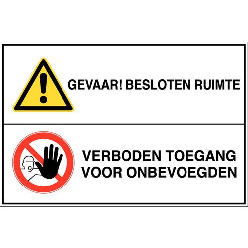 | Opdruk | Gevaar! Besloten ruimte + verboden toegang voor onbevoegden |