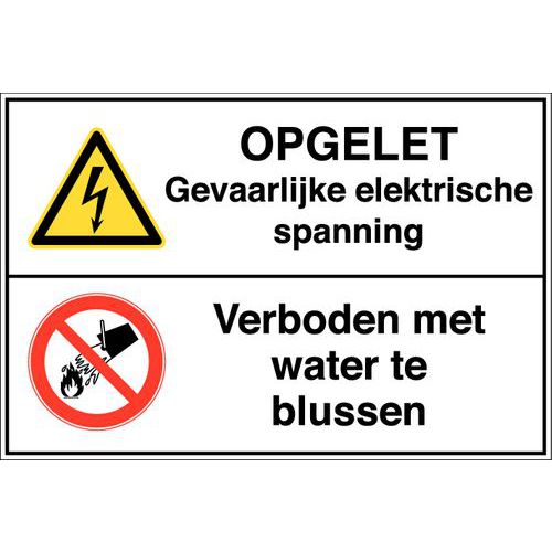 | Opdruk | Opgelet gevaarlijke elektrische spanning + verboden met water te blussen |