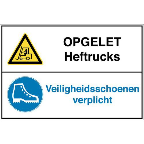 | Productnaam | Gecombineerd waarschuwingsbord, Zelfklevend: ja, Stijf: nee, Paneel vorm: Rechthoek |