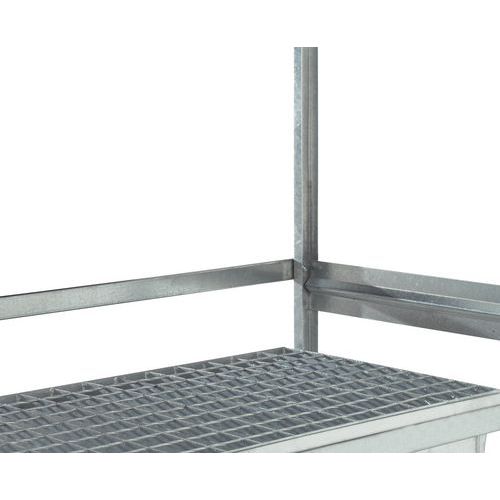 Samenstelling: 2 staanders, 3 paar dwarsliggers en 3 antivalringen. Elk niveau bestaat uit een opvangbak met rooster met een vermogen van 100 L.