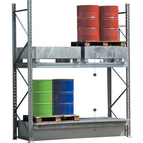 | Productnaam | Gegalvaniseerd stalen opvangbak, Vermogen (aantal vaten): 4, Roostermat: nee, Inhoud opvangbak: 440 L |