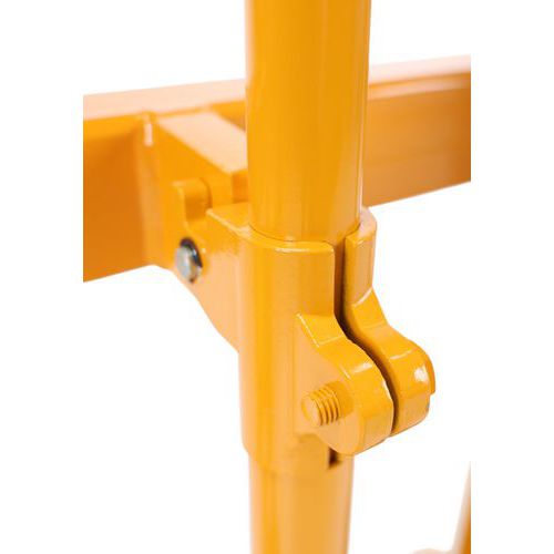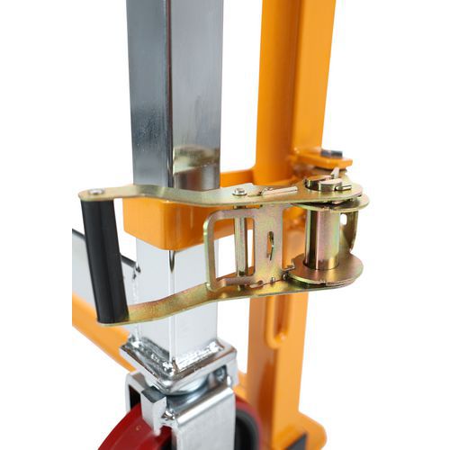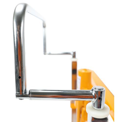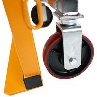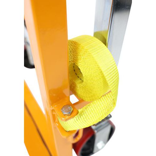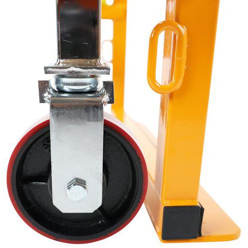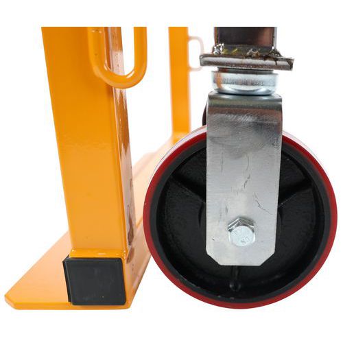 Schuimrubberen band: bescherming van de te verplaatsen ladingen. 2 zwenkwielen met lager voor zware ladingen. Wielen met loopvlak in polyurethaan. Wielbreedte: 40 mm.