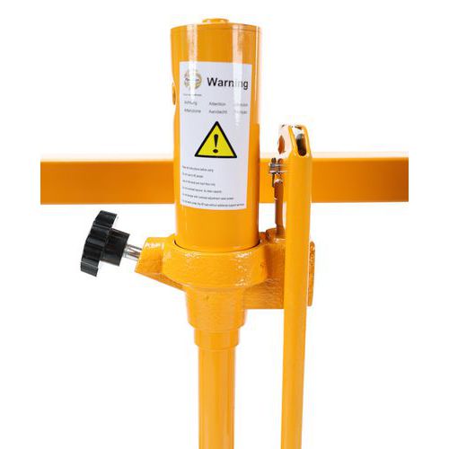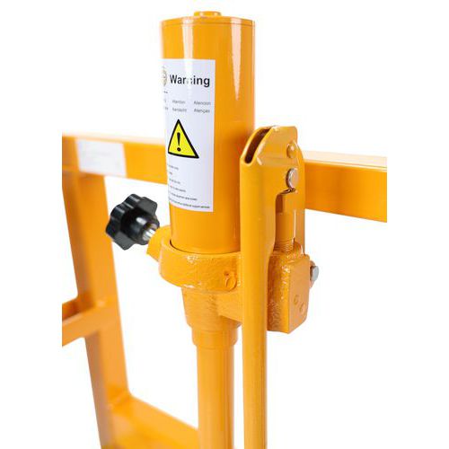 Laadvlak met handmatige opheffing, bediend door een hydraulische pomp, hefhoogte 250 mm.