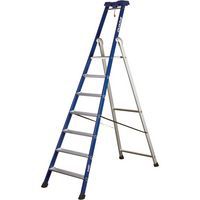 Trapladder van gelakt aluminium, wordt niet snel vuil en met gefelste treden. Zeer stevige versterkte scharnieren met antiklemvoorziening. Maximale stabiliteit en duurzaamheid van de montage van treden en stijlen. Draaibord met twee standen voor ruimtebesparing. Antislipvoetjes en -treden. Trapladder met grote steunoppervlakken op de grond.