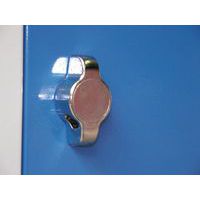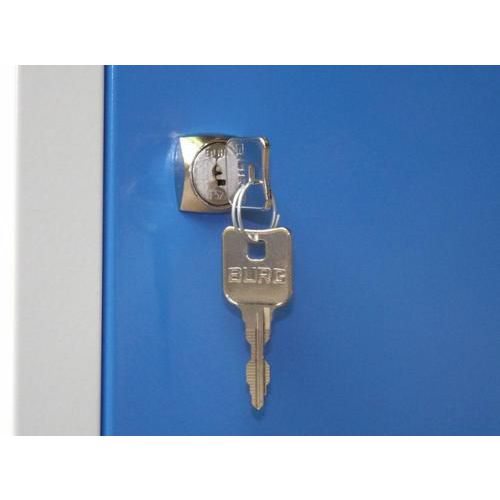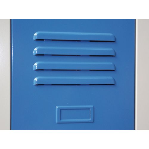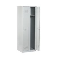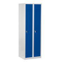Garderobekast voor kantoor van gelast staal, bestaande uit 2 afzonderlijk vergrendelbare kolommen.
