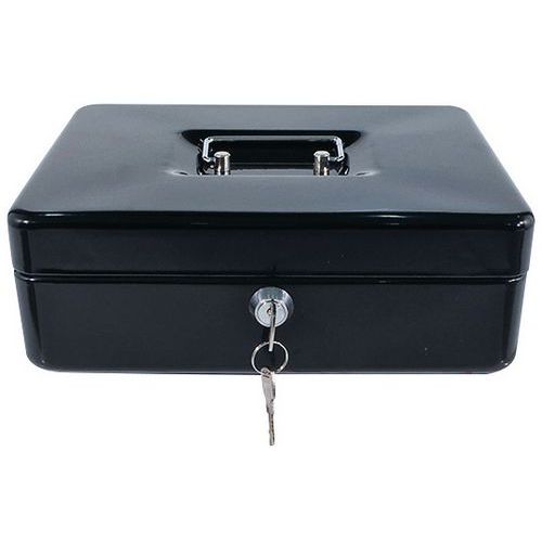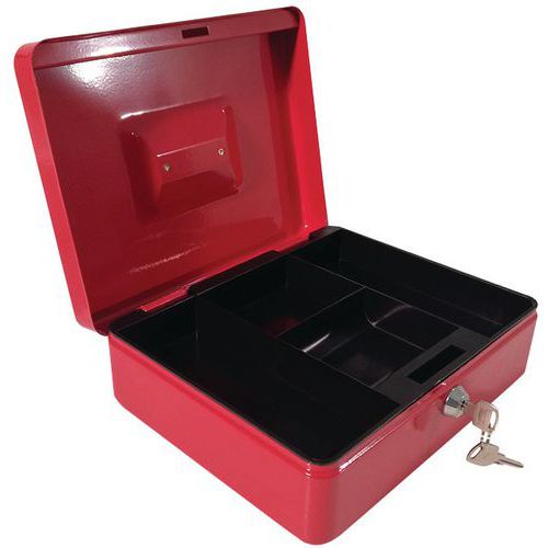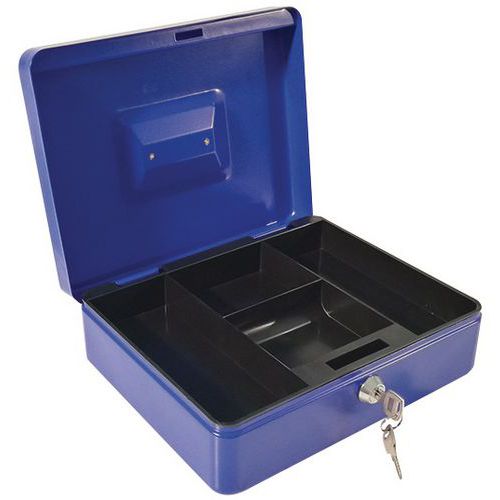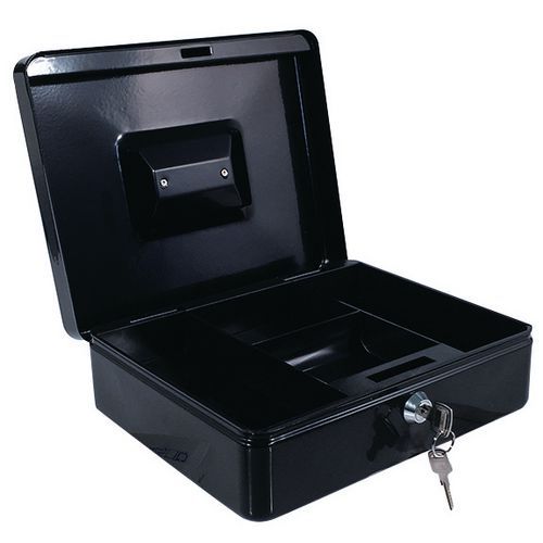 - Metalen geldkist met slot.
