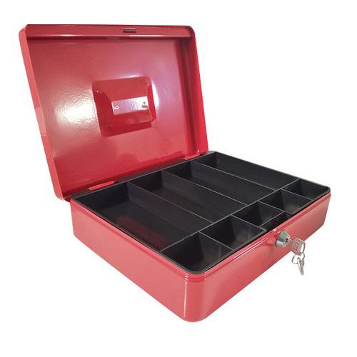 - Metalen geldkist met slot.