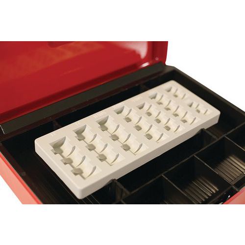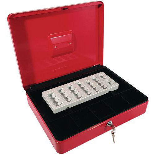 | Productnaam | Geldkist Eco met muntenvak, Type sluiting: Met sleutel, Aantal biljetvakken: 4, Kleur: Rood, Breedte: 285 mm |