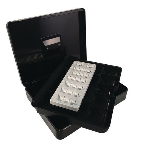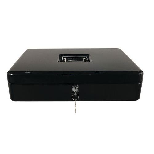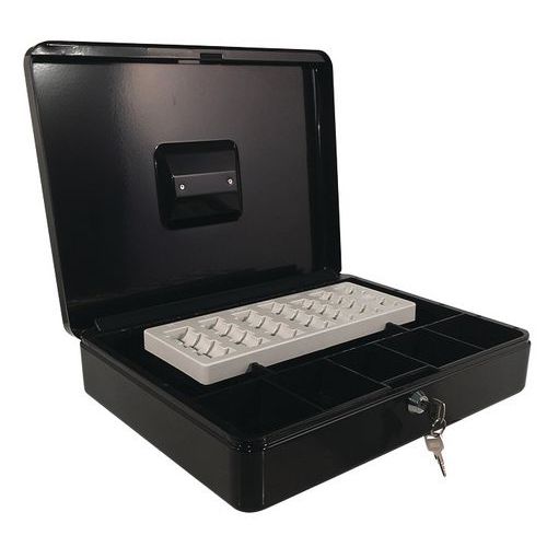 | Productnaam | Geldkist Eco met muntenvak, Kleur: Zwart, Breedte: 285 mm, Lengtes: 370 mm, Hoogte: 95 mm, Materialen: Staal |
