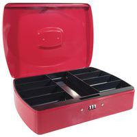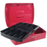 Geldkist met codeslot, Kleur: Rood, Breedte: 238 mm, Lengtes: 330 mm, Hoogte: 90 mm, Materialen: Staal