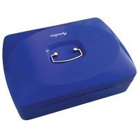Geldkist met codeslot, Kleur: Blauw, Breedte: 238 mm, Lengtes: 330 mm, Hoogte: 90 mm, Materialen: Staal
