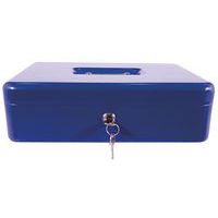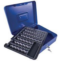Geldkist met muntenvak, Kleur: Blauw, Breedte: 240 mm, Lengtes: 300 mm, Hoogte: 90 mm, Materialen: Staal