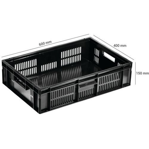 Opengewerkte ECO stapelbare bakken, Totale inhoud: 28 L, Stapelbaar: ja, Totale hoogte: 150 mm Opengewerkte ECO stapelbare bakken, Totale inhoud: 28 L, Stapelbaar: ja, Totale hoogte: 150 mm
