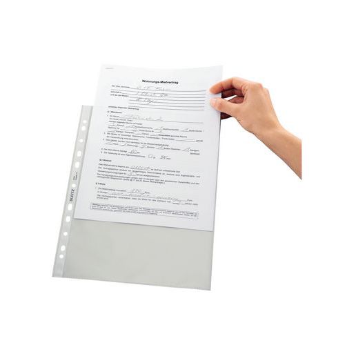 | Productnaam | Geperforeerde hoes A4, doorzichtig glad polypropyleen, 75 µ, Leitz, Kleur: Transparant |